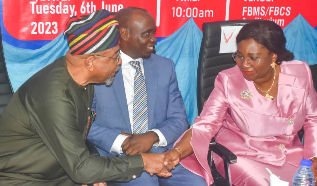 Pics 6069 from left: Chief Medical Director, Lagos State University Teaching Hospital (LASUTH), Prof. Adetokunbo Fabamwo, Provost Lagos State University College of Medicine (LASUCOM), Ikeja, Prof. Abiodun Adewuyi and Vice Chancellor, Lagos State University (LASU), Prof. Ibiyemi Olatunji-Bello during the Induction ceremony for 3rd set of Bachelor of Nursing Science Graduates of the Lagos State University College of Medicine, Ikeja, in Lagos on Tuesday, 06 June 2023
