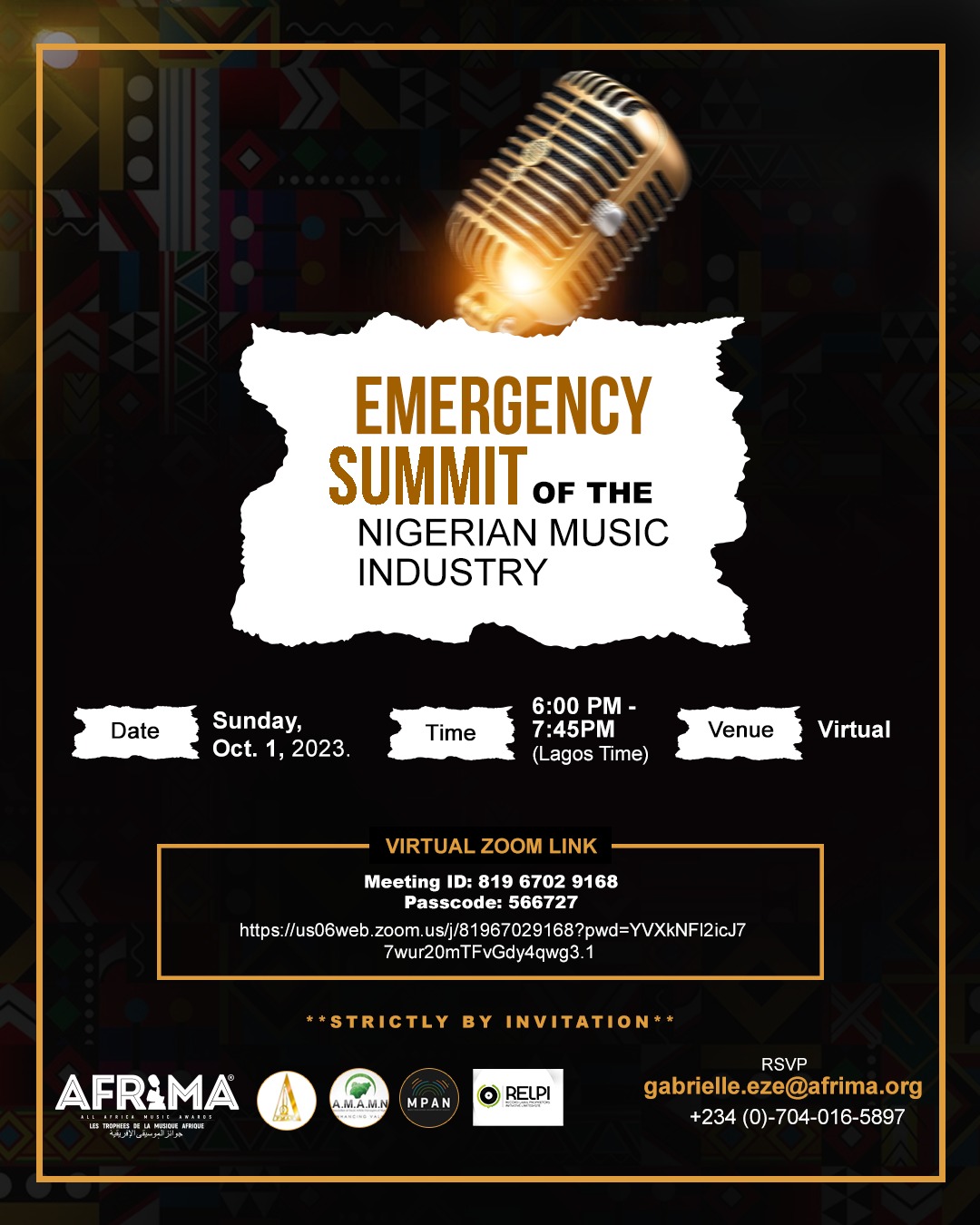 To identify and initiate lasting solutions to critical challenges in the music industry, AFRIMA Music Business Summit in partnership with the Performing Musicians Employers Association of Nigeria (PMAN), Record Label Proprietors Initiative (RELPI), Association of Music Artist Managers of Nigeria (AMAMN) and Music Publishers Association of Nigeria (MPAN) is holding an emergency summit of stakeholders today, Sunday, Oct. 1, 2023.
