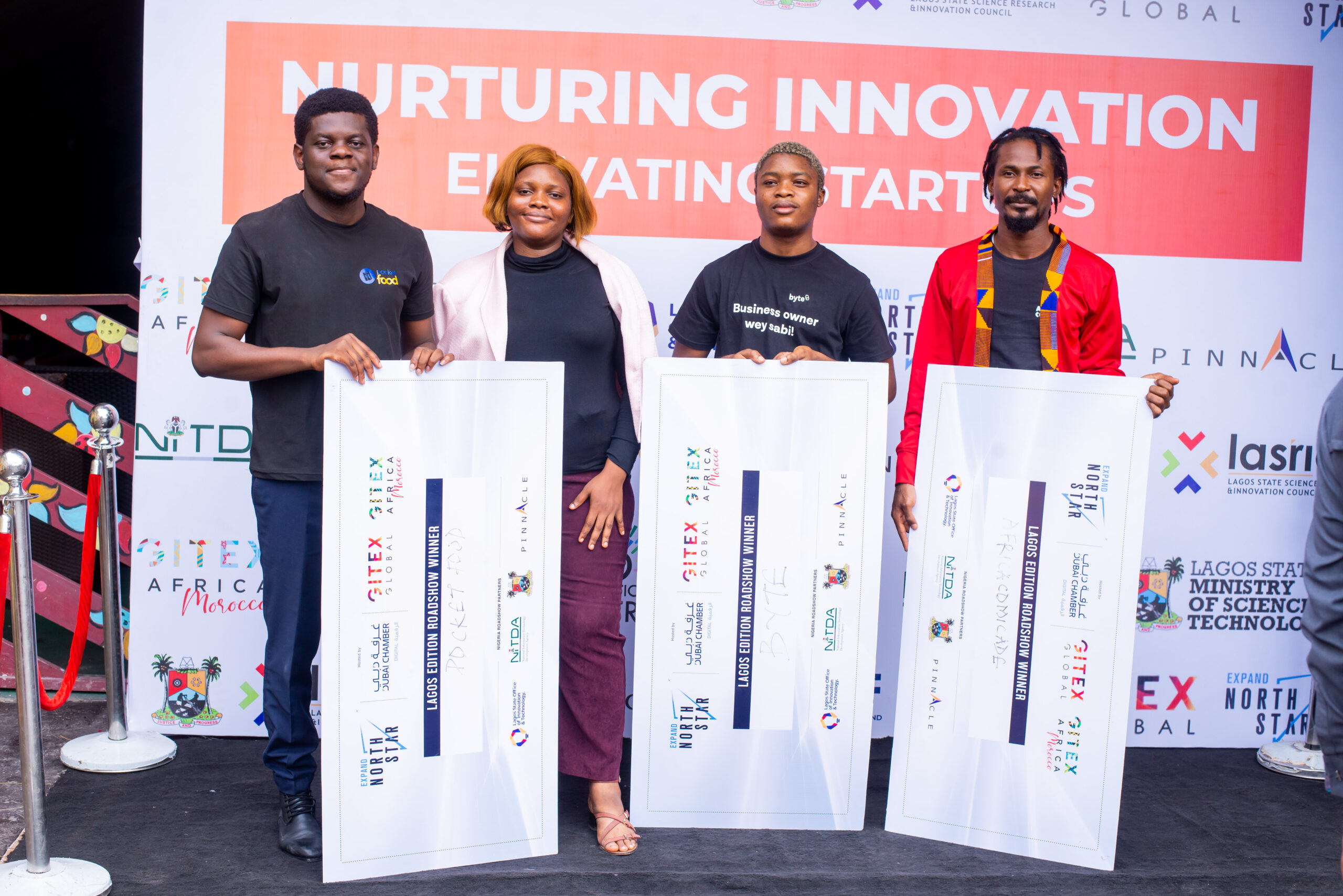 The winners at the Lagos Roadshow Event are Pocket Food; Fuspay Technologies; Byte; Africa Comicade, Get Equity; Alajo; Instant Rad and Dataleum.
