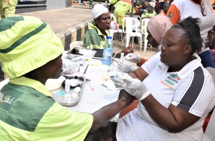 She said: “This exercise has its many advantages, as some of our sweepers who might have underlying ailments before will be conscious of their health status and manage it well. We have done two batches so far. This is the third batch. We captured 1,109 sweepers for the first batch, the second batch had 1,009, today, we have screened over 1000 and still counting”.