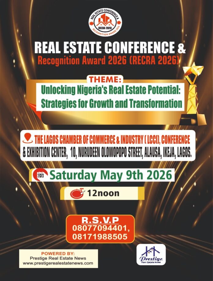 Lagos will host some of the country’s most accomplished real estate professionals on Saturday May 9 at the Lagos Chamber of Commerce and Industry, (LCCI), Conference and Exhibition Center, Alausa, Ikeja, as the Real Estate Conference and Recognition Awards, RECRA 2026 prepares to spotlight outstanding contributions in the sector.